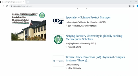 图1 我校在Nature Career上发布招聘信息