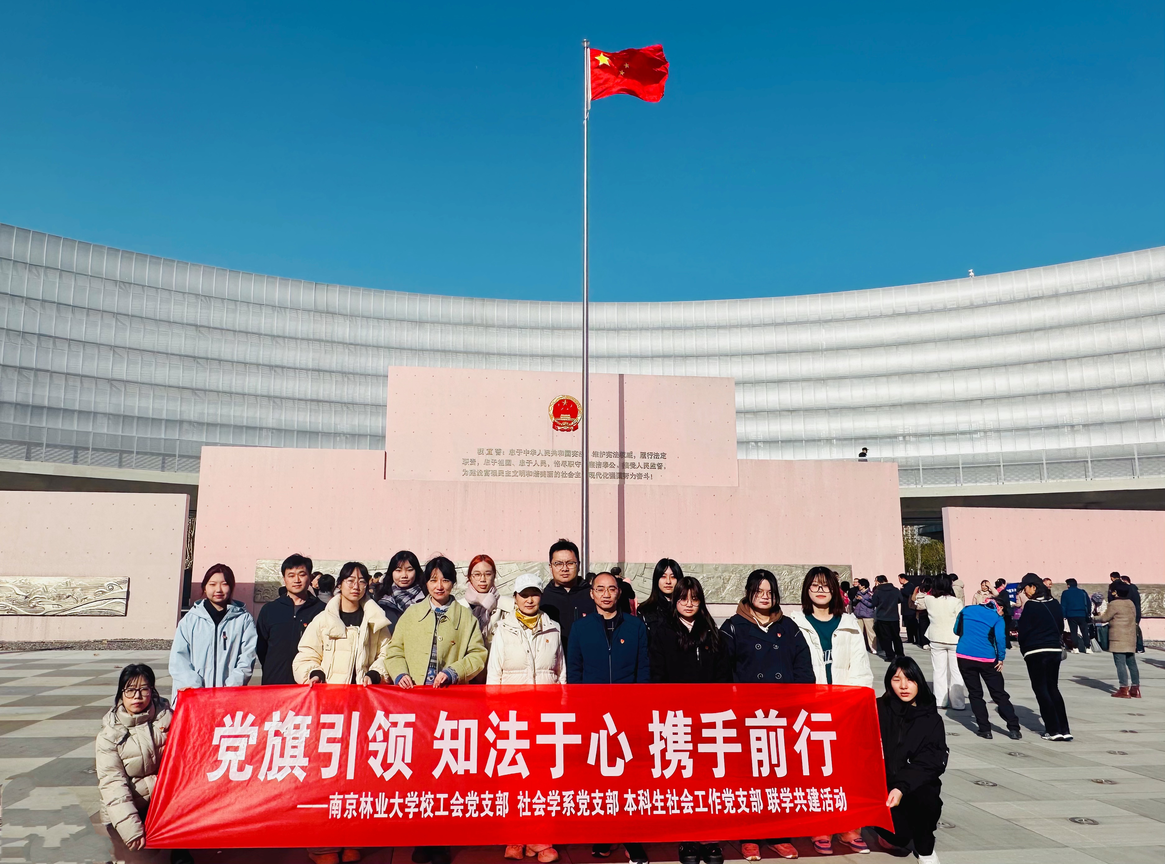 为进一步深入学习贯彻党的二十届三中全会精神,2024年11月27日下午,机关校工会党支部、人文社会科学学院社会学系党支部、本科生社会工作党支部联合开展了"党旗引领 知法于心 携手前行"的联学共建主题党日活动。校工会支部党员马龙华、王海燕,人文社会科学学院社会学系师生党员易艳阳、钱坤、刘轶锋、樊思雨等参加本次活动。