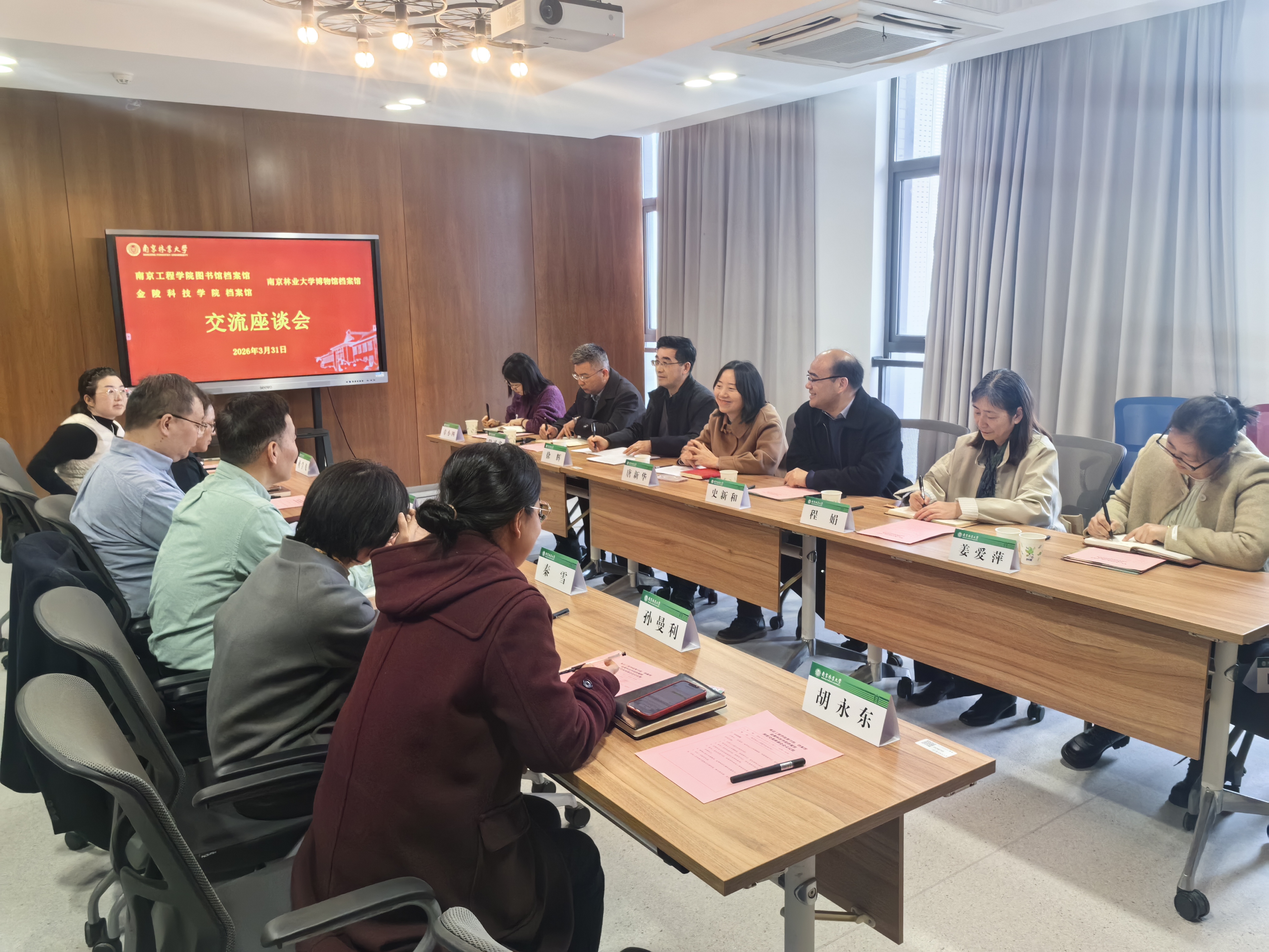 与会三方在新图书馆8B707举行座谈会,共同推进档案管理工作与网格化推进路径,档案信息化、数字化建设与长期规划以及档案人才队伍建设、档案资源安全、档案资源利用开发等工作。博物馆档案馆馆长、支部书记顾炜江,博物馆档案馆副馆长、支部副书记余蜀宜,博物馆档案馆支部党员代表等参加座谈会。